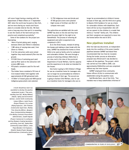 will never forget having a meeting with the Department of Water Affairs on 11 September 2001 when the world was focused on New York, and we were sharing our results and future plans in a wooden shed at the site. We have come a long way since then and it is rewarding to see the results of the hard work put into practice and completed successfully.”