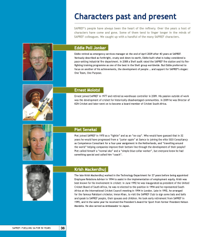 SAPREF’s people have always been the heart of the refinery. Over the years a host of characters have come and gone. Some of them tend to linger longer in the minds of SAPREF colleagues. We caught up with a handful of the many SAPREF characters.