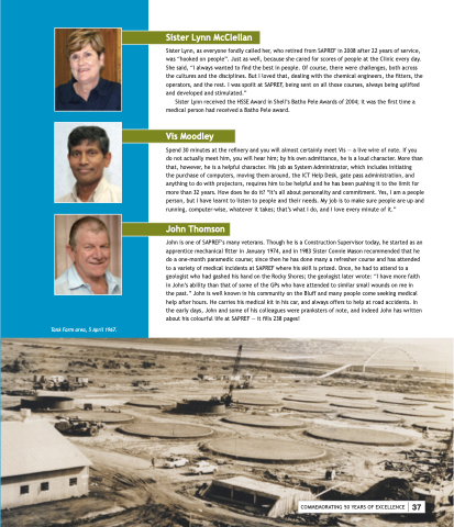 Sister Lynn, as everyone fondly called her, who retired from SAPREF in 2008 after 22 years of service, was “hooked on people”. Just as well, because she cared for scores of people at the Clinic every day. She said, “I always wanted to find the best in people. Of course, there were challenges, both across the cultures and the disciplines. But I loved that, dealing with the chemical engineers, the fitters, the operators, and the rest. I was spoilt at SAPREF, being sent on all those courses, always being uplifted and developed and stimulated.”