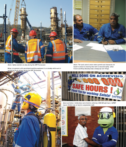 Below: An operator with specialised breathing equipment is on standby while work is carried out by an artisan during the 2009 Turnaround.
