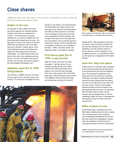 SAPREF has seen a few close shaves in its 50 years. A combination of skill, courage and pure luck has kept real disaster at bay.
