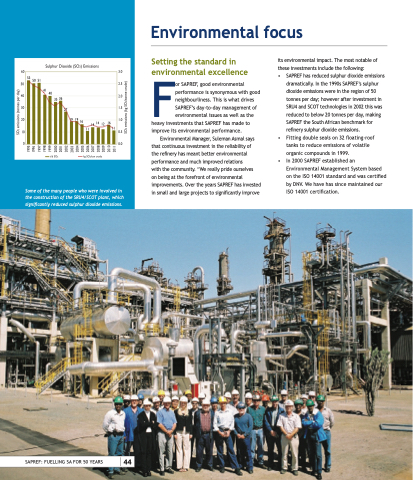 environmental issues as well as the heavy investments that SAPREF has made to improve its environmental performance.