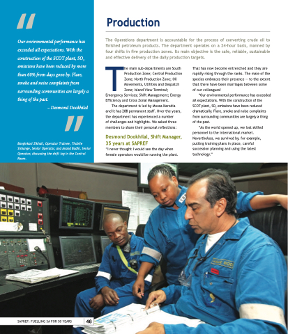 “Our environmental performance has exceeded all expectations. With the construction of the SCOT plant, SO2 emissions have been reduced by more than 60% from days gone by. Flare, smoke and noise complaints from surrounding communities are largely a thing of the past. ”