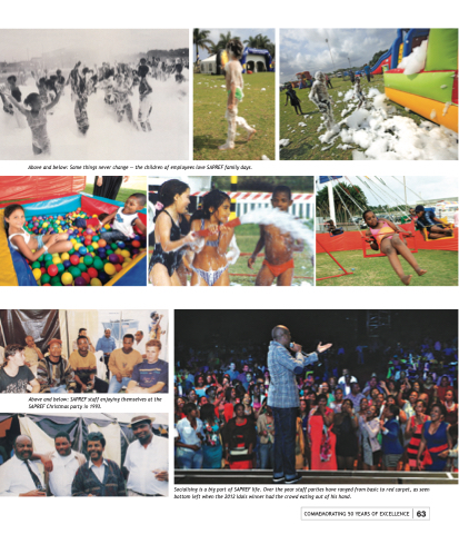 Socialising is a big part of SAPREF life. Over the year staff parties have ranged from basic to red carpet, as seen bottom left when the 2012 Idols winner had the crowd eating out of his hand.