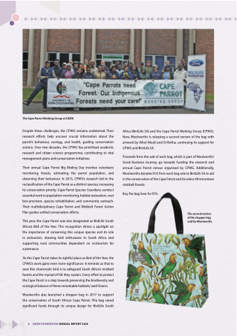 Woolworths also launched a shopper bag in 2017 to support the conservation of South Africa’s Cape Parrot. This bag raised significant funds through its unique design for BirdLife South