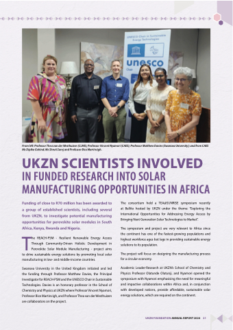 Funding of close to R70 million has been awarded to a group of established scientists, including several from UKZN, to investigate potential manufacturing opportunities for perovskite solar modules in South Africa, Kenya, Rwanda and Nigeria.