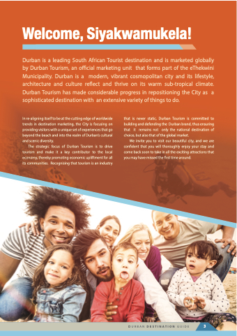 that is never static, Durban Tourism is committed to building and defending the Durban brand, thus ensuring that it remains not only the national destination of choice, but also that of the global market.