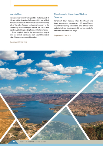 Just a couple of kilometres beyond the Durban suburb of Hillcrest, within the Valley of a Thousand Hills, you will find the scenic Inanda Dam which threads between the steep hills of the valley. This spot has become legendary as the compulsory second overnight stop on the Dusi Canoe Marathon, a thrilling sporting fixture with a long history.