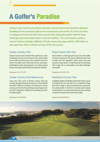 56 DURBAN DESTiNATiON GUIDE