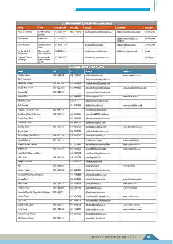 Kuhle Tours 031 332 0768 081 513 8397 info@kuhletours.co.za www.kuhletours.co.za