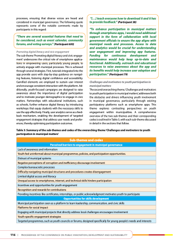 table 3: Summary of the sub-themes and codes of the overarching theme ‘Challenges and motivators to youth participation in municipal matters’
