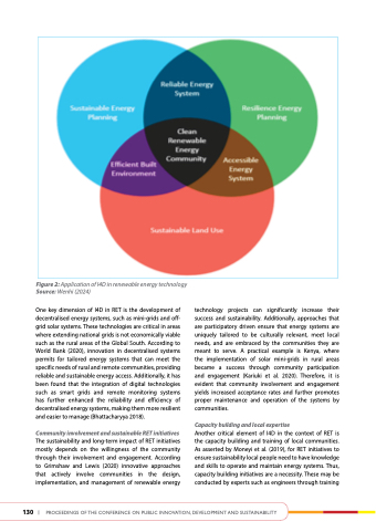 technology projects can significantly increase their success and sustainability. Additionally, approaches that are participatory driven ensure that energy systems are uniquely tailored to be culturally relevant, meet local needs, and are embraced by the communities they are meant to serve. A practical example is Kenya, where the implementation of solar mini-grids in rural areas became a success through community participation and engagement (Kariuki et al. 2020). Therefore, it is evident that community involvement and engagement yields increased acceptance rates and further promotes proper maintenance and operation of the systems by communities.