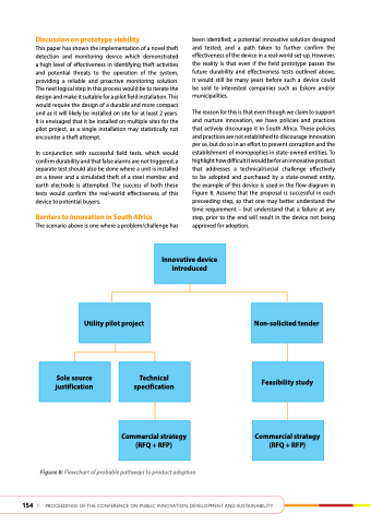 The reason for this is that even though we claim to support and nurture innovation, we have policies and practices that actively discourage it in South Africa. These policies and practices are not established to discourage innovation per se, but do so in an effort to prevent corruption and the establishment of monopoplies in state-owned entities. To highlight how difficult it would be for an innovative product that addresses a technical/social challenge effectively to be adopted and purchased by a state-owned entity, the example of this device is used in the flow diagram in Figure 8. Assume that the proposal is successful in each preceeding step, so that one may better understand the time requirement – but understand that a failure at any step, prior to the end will result in the device not being approved for adoption.