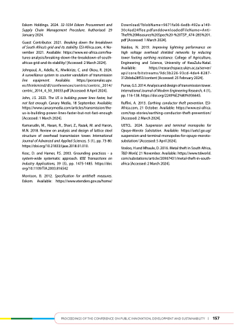Ruffini, A. 2013. Earthing conductor theft prevention. ESI- Africa.com, 21 October. Available: https://www.esi-africa. com/top-stories/earthing-conductor-theft-prevention/ [Accessed: 2 March 2024].