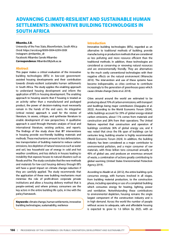 advaNCINg CLIMate-reSILIeNt aNd SuStaINaBLe huMaN SettLeMeNtS: INNovatIve BuILdINg teChNoLogIeS IN South afrICa