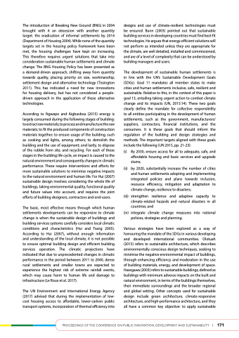 The UN Environment and International Energy Agency (2017) advised that during the implementation of low- cost housing access to affordable, lower-carbon public transport systems, incorporation of thermal efficiency into