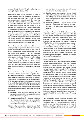 The fundamental housing legislative framework for enforcement of the policy regulations supports the sustainable means of housing development which is people-centred and driven. According to the national Housing Act, all three spheres of government must: (i) consult meaningfully with individuals and communities