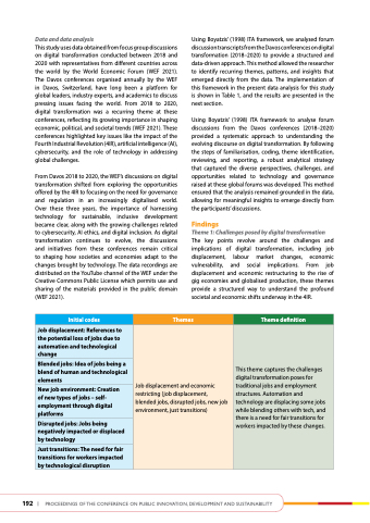 192 | Proceedings of the conference on Public innovation, develoPment and sustainability