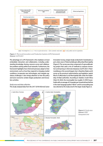 Innovation Survey, a larger study conducted in Sweetwaters, a peri-urban area in Pietermaritzburg’s uMsunduzi Municipality (Figure 2). The survey was a key component of a groundbreak- ing project that used a mix of methods to measure innova- tion and learning in informal enterprises (CeSTII 2021). Pieter- maritzburg is the second-largest city in KwaZulu-Natal, and it serves as the province’s administrative and legislative capital. Much of uMsunduzi Local Municipality falls under the leader- ship of tribal authorities. According to Statistics South Africa (Stats SA 2023), the municipality has roughly 16 3993 house- holds with an average of 3.6 people per household and isiZulu is the main language spoken. Ward 1 and its surrounding area was selected as the study area for the larger study (Figure 2).