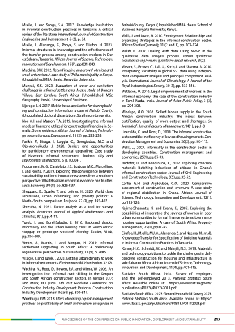 Wachira, N., Root, D., Bowen, P.A. and Olima, W. 2006. An investigation into informal craft skilling in the Kenyan and South African construction sectors. In Verster, J.J.P. and Marx, H.J (Eds). 5th Post Graduate Conference on Construction Industry Development. Pretoria: Construction Industry Development Board. pp. 300-341.