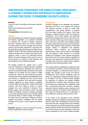 INNovatIoN StrategIeS for agrICuLturaL reSILIeNCe: a dyNaMIC CaPaBILItIeS aPProaCh to INNovatIoN durINg the CovId-19 PaNdeMIC IN South afrICa