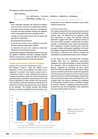 On one hand, firms that maintained their innovation activities likely drew on established technological capabilities and market knowledge to shield themselves from disruption. This is consistent with the theory of dynamic capabilities as articulated by Teece (2007), where firms that can effectively make use of their existing resources are better positioned to sustain their operations in the face of external shocks. On the other hand, the fact that 45% of these firms still faced challenges underlines the limits of product innovation when confronted with a crisis of global scale. This outcome challenges the traditional view that product innovation alone is a sufficient strategy for long-term resilience, suggesting instead that product- focused firms must also be adaptable in their operational processes to fully weather such storms.