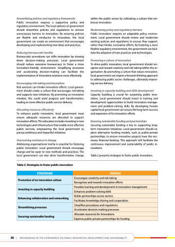 38 | Proceedings of the conference on Public innovation, develoPment and sustainability