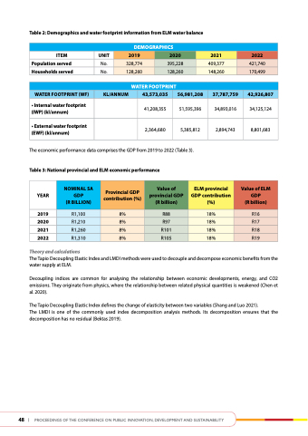 The economic performance data comprises the GDP from 2019 to 2022 (Table 3).