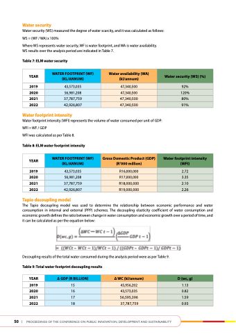 table 9: total water footprint decoupling results