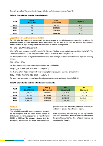 Decoupling results of the external water footprint for the analysis period were as per Table 10.