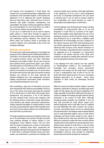 and improve crisis management in South Africa. The research aims to provide policymakers, stakeholders, and practitioners with actionable insights. It will examine the application of AI in addressing the specific challenges faced by South Africa, with a particular focus on how AI intersects with public innovation, development, and sustainability. This study is timely and significant, offering key recommendations for how South Africa can build a more inclusive, resilient, and sustainable future.