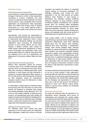 In Johannesburg a hybrid approach combining market- based practices with state intervention has shown both promise and limitations in promoting urban renewal and providing affordable housing (Mosselson 2017). The success of such initiatives depends on balancing social, economic, and developmental goals while avoiding the negative consequences of gentrification and displacement. In the Free State province, addressing similar challenges requires a robust policy framework that integrates urban regeneration with sustainable housing solutions.
