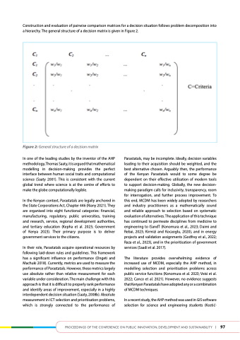 Parastatals, may be incomplete. Ideally, decision variables leading to their acquisition should be weighted, and the best alternative chosen. Arguably then, the performance of the Kenyan Parastatals would to some degree be dependent on their effective utilisation of modern tools to support decision-making. Globally, the new decision- making paradigm calls for inclusivity, transparency, room for interrogation, and further process improvement. To this end, MCDM has been widely adopted by researchers and industry practitioners as a mathematically sound and reliable approach to selection based on systematic evaluation of alternatives. The application of this technique has continued to permeate disciplines from medicine to engineering to ISandT (Konomura et al., 2023; Daimi and Rebai, 2023; Kirmizi and Kocaoglu, 2020), and in energy projects and validation assignments (Godfrey et al., 2022; Raza et al., 2023), and in the prioritisation of government services (Saadi et al. 2017).