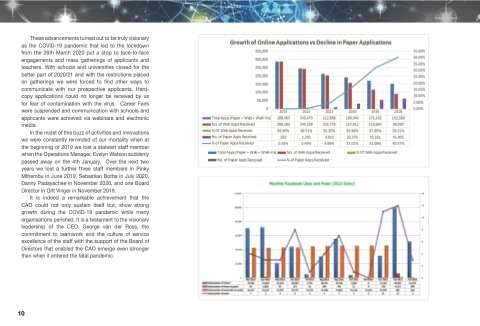 These advancements turned out to be truly visionary as the COVID-19 pandemic that led to the lockdown from the 26th March 2020 put a stop to face-to-face engagements and mass gatherings of applicants and teachers. With schools and universities closed for the better part of 2020/21 and with the restrictions placed on gatherings we were forced to find other ways to communicate with our prospective applicants. Hard- copy applications could no longer be received by us for fear of contamination with the virus. Career Fairs were suspended and communication with schools and applicants were achieved via webinars and electronic media.