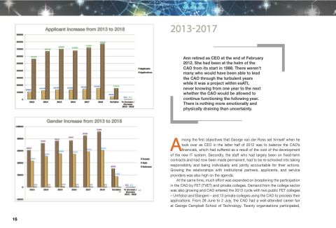 Among the first objectives that George van der Ross set himself when he took over as CEO in the latter half of 2012 was to balance the CAO’s financials, which had suffered as a result of the cost of the development of the new IT system. Secondly, the staff who had largely been on fixed-term contracts and had now been made permanent, had to be re-schooled into taking responsibility and being individually and jointly accountable for their actions. Growing the relationships with institutional partners, applicants, and service providers was also high on the agenda.