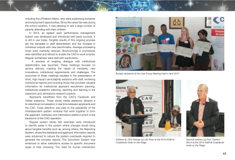 Applicants benefitted from the CAO’s Facebook and Twitter presence. These social media platforms allowed a bi-directional conversation in real time between applicants and the CAO. Close attention was paid to the operability of the interdependent system modules that work together to form the applicant, institution and information platform,which is the backbone of the CAO operation.