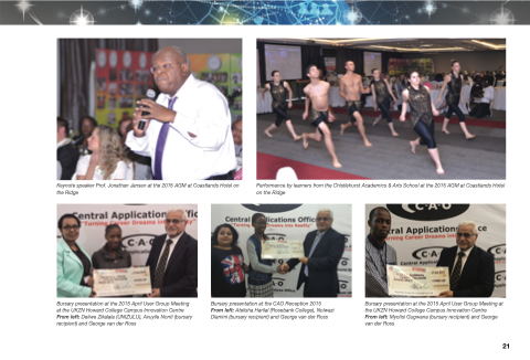 Bursary presentation at the CAO Reception 2015 From left: Atelisha Harilal (Rosebank College), Nolwazi Dlamini (bursary recipient) and George van der Ross