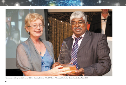 36 Token of appreciation presented to former CEO Ann Knock by Chairman of the CAO Board of Directors Mike Naidoo – Durban Country Club, March 2012