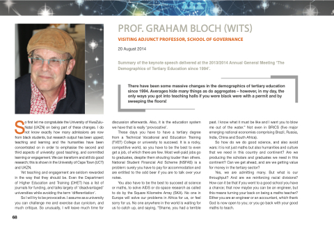Summary of the keynote speech delivered at the 2013/2014 Annual General Meeting ‘The Demographics of Tertiary Education since 1994’.