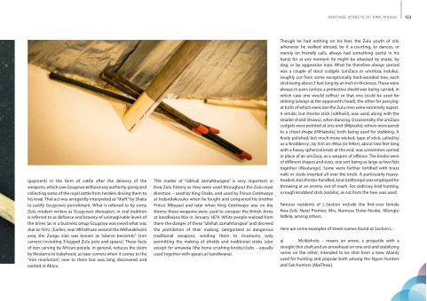 (payment) in the form of cattle after the delivery of the weapons, which saw Gcugcwa without any authority going and collecting some of the royal cattle from herders driving them to his kraal. That act was arrogantly interpreted as “theft” by Shaka to justify Gcugcwa’s punishment. What is referred to by some Zulu modern writers as Gcugcwa’s disrespect, in oral tradition is referred to as defiance and bravery of unimaginable levels of the times (as in a business setup Gcugcwa was owed what was due to him). [Earlier, near Mhlathuze around the Mkhwakhwini area, the Zungu clan was known as “abenzi bensimbi” (iron carvers) including 3-legged Zulu pots and spears]. These facts of iron carving by African people, in general, reduces the claim by Westerns to babyhood, as later comers when it comes to the “iron revolution”, new to them but was long discovered and existed in Africa.