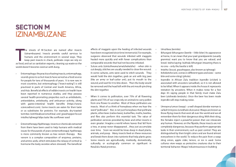 The streets of M-Section are named after insects (izinambuzane). Insects provide useful services to humans and the environment in several ways. They keep pest insects in check, pollinate crops we rely on as food, and act as sanitation experts, cleaning up waste so the world doesn’t become overrun with dung.