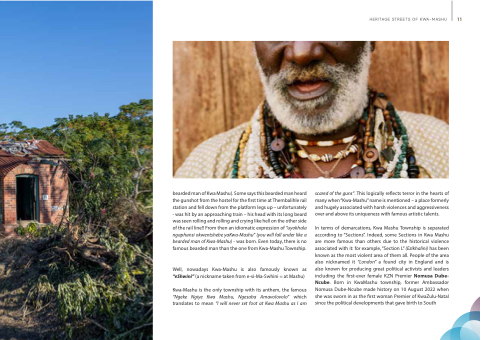 bearded man of Kwa Mashu). Some says this bearded man heard the gunshot from the hostel for the first time at Thembalihle rail station and fell down from the platform legs up – unfortunately - was hit by an approaching train – his head with its long beard was seen rolling and rolling and crying like hell on the other side of the rail line!! From then an idiomatic expression of “uyokhala ngaphansi okwentshebe yaKwa-Mashu” (you will fall under like a bearded man of Kwa-Mashu) - was born. Even today, there is no famous bearded man than the one from Kwa-Mashu Township.