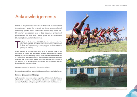 The National Heritage Council (NHC) for funding and supporting the project through DSAC PESP4. The KZN Amafa Heritage and Research Institute for supplementary funding support towards additional printing for archiving.