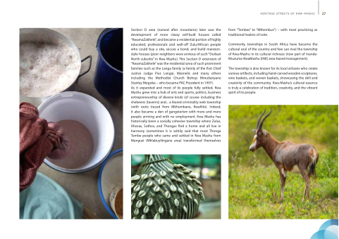 Commonly, townships in South Africa have become the cultural soul of the country and few can rival the township of Kwa-Mashu in its cultural richness (now part of Inanda- Ntuzuma-KwaMashu [INK] area-based management).
