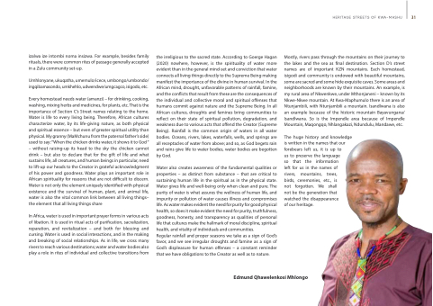 Every homestead needs water (amanzi) – for drinking, cooking, washing, mixing herbs and medicines, for plants, etc. That is the importance of Section C’s Street names relating to the home. Water is life to every living being. Therefore, African cultures characterize water, by its life-giving nature, as both physical and spiritual essence – but even of greater spiritual utility than physical. My granny (MaMchunu from the paternal father’s side) used to say: “When the chicken drinks water, it shows it to God “ – without raising-up its head to the sky the chicken cannot drink – but also to declare that for the gift of life and what sustains life, all creatures, and human beings in particular, need to lift-up our heads to the Creator in grateful acknowledgment of his power and goodness. Water plays an important role in African spirituality for reasons that are not difficult to discern. Water is not only the element uniquely identified with physical existence and the survival of human, plant, and animal life, water is also the vital common link between all living things– the element that all living things share