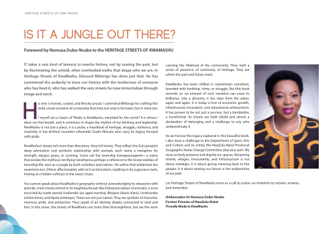 Foreword by Nomusa Dube-Ncube to the HERITAGE STREETS OF KWAMASHU