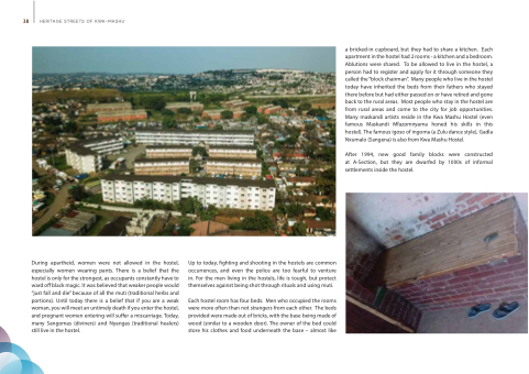 Up to today, fighting and shooting in the hostels are common occurrences, and even the police are too fearful to venture in. For the men living in the hostels, life is tough, but protect themselves against being shot through rituals and using muti.