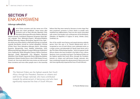One of the world’s most famous and award-winning celebrity person from this area is Dr Thembi Mtshali-Jones who is recognized as one of South Africa’s most celebrated artists: as a singer, actress, and playwright (of S’gudi Snayis fame) and is also The Order of Ikhamanga awardee – which recognizes South African citizens who have excelled in the fields of arts, culture, literature, music, journalism and sport. The National Orders are the highest awards that South Africa, through the President, bestows on citizens and well-known foreign nationals, who have contributed towards the advancement of democracy and who have significantly impacted the lives of South Africans.