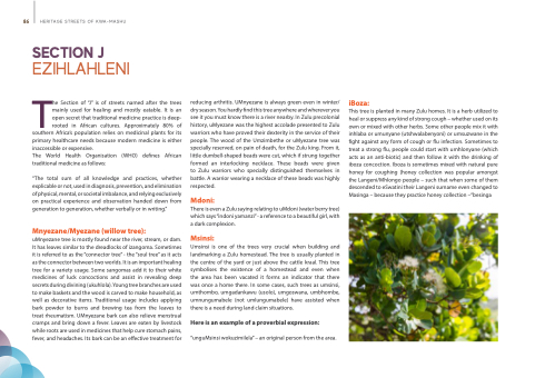The Section of “J” is of streets named after the trees mainly used for healing and mostly eatable. It is an open secret that traditional medicine practice is deep- rooted in African cultures. Approximately 80% of southern Africa’s population relies on medicinal plants for its primary healthcare needs because modern medicine is either inaccessible or expensive.