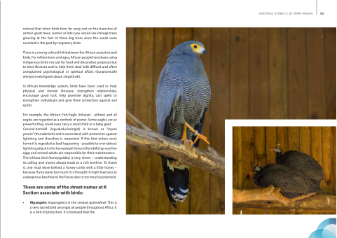 There is a strong cultural link between the African ancestors and birds. For millenniums and ages, African people have been using indigenous birds not just for food and decorative purposes but to treat illnesses and to help them deal with difficult and often unexplained psychological or spiritual affairs (kunanomuthi wenyoni wezingane ukuze zingethuki).